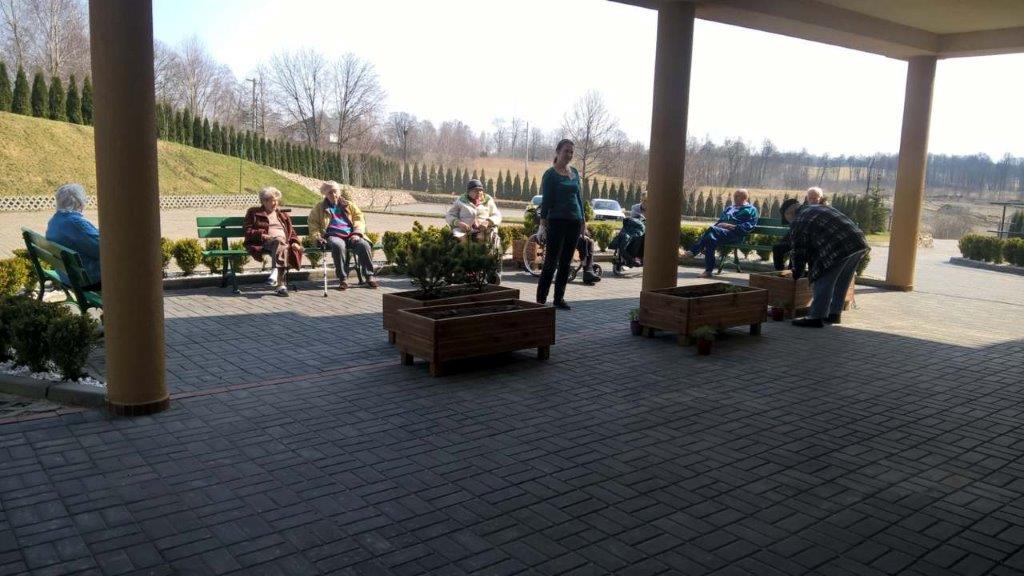 Es ist sehr angenehm eine Tasse Kaffee auf unserer Terrasse zu trinken. Wir bedanken uns bei unseren Seniorinnen und Senioren für die Hilfe beim Pflanzen von Blumen sowie für Gesang und Tänze beim Gitarren-Geräusch. Dank Ihnen ist unsere Umgebung so schön und die Atmosphäre im Seniorenheim „FAMILIA“ so fröhlich.