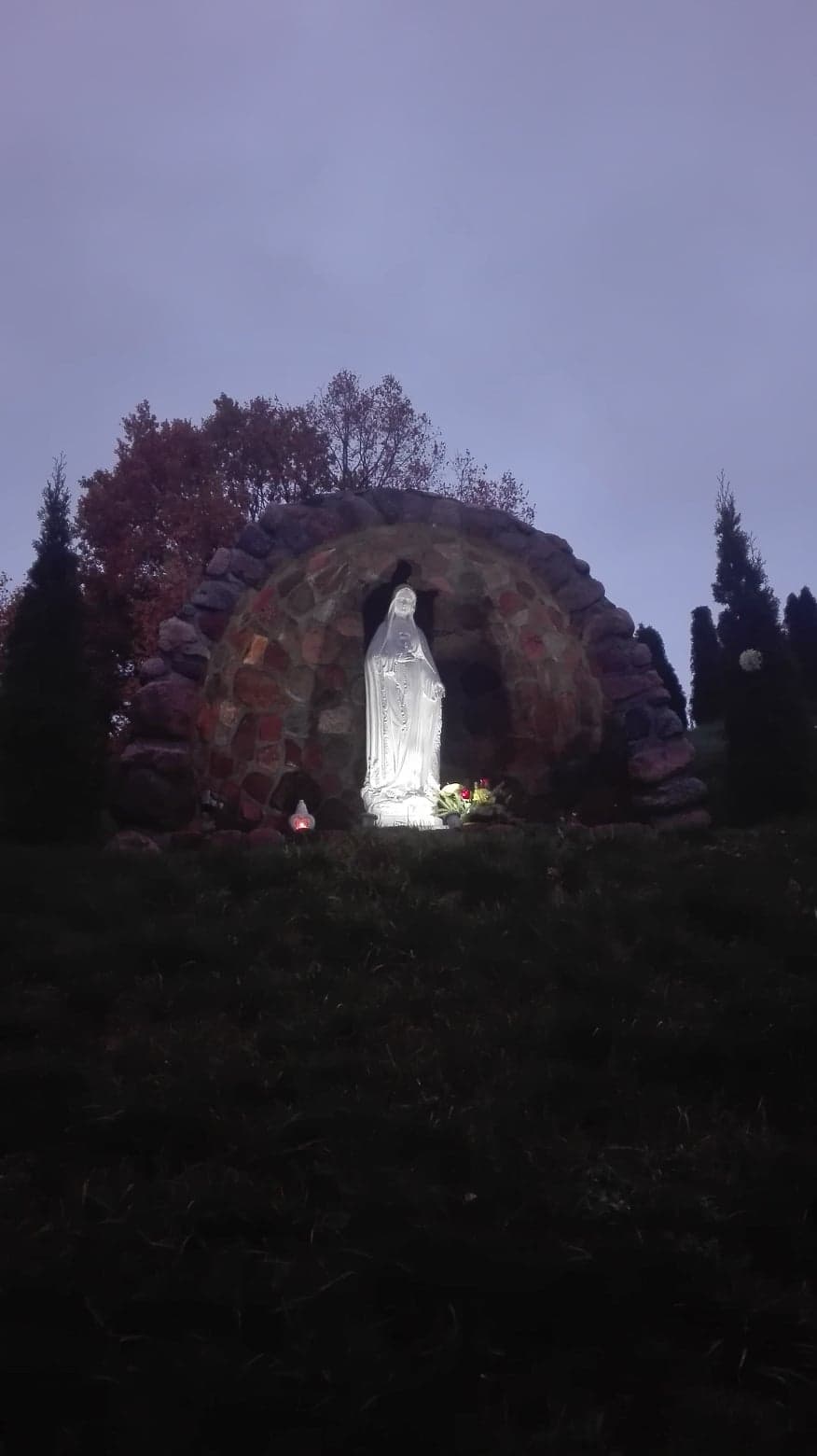W uroczystość Wszystkich Świętych 1 listopada tradycją jest wspominanie zmarłych. Dla nieobecnych członków naszych rodzin zrobiliśmy własnoręcznie małą wiązankę i zapaliliśmy znicz przy kapliczce Matki Bożej.
