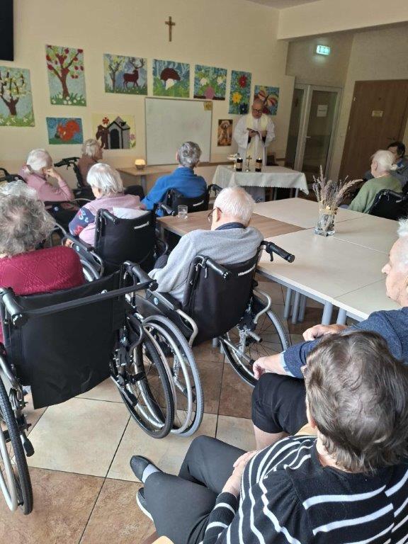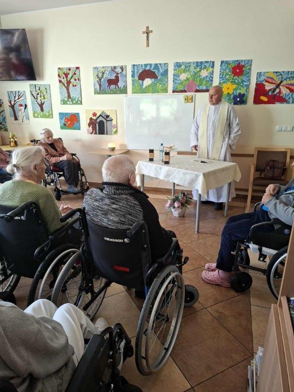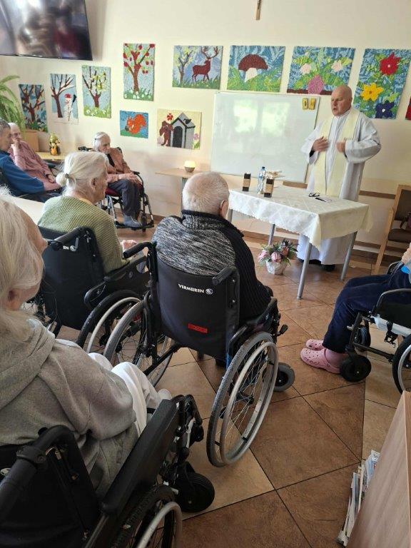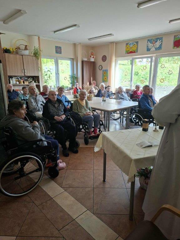 Jak co roku w Domu Seniora Familia obchodziliśmy dzień Wszystkich Świętych. Jest to święto przypadające na dzień 1-go listopada. Z tej okazji Pensjonariusze Domu Seniora Familia przygotowali podczas terapii zajęciowej wiązankę, która wraz ze zniczami została ustawiona przy figurce Matki Boskiej, aby uczcić pamięć o wszystkich zmarłych. Dodatkowo w dniu wczorajszym nasi Pensjonariusze podczas mszy świętej modlili się za wszystkich Pensjonariuszy, jak również członków ich rodzin, których nie ma już wśród nas.
